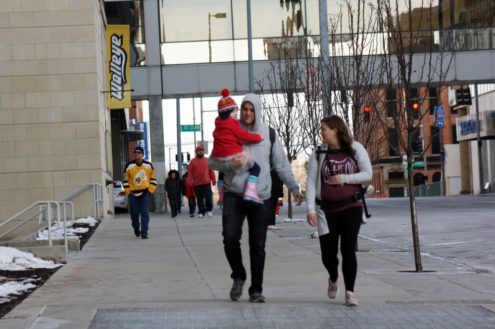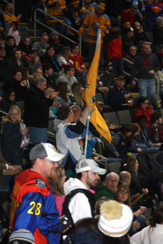Or a child riding on their parents’ shoulders, in this case also almost express the same intensity of excitement as a fan waving Toledo Walleye flag after his favorite team scoring a goal.