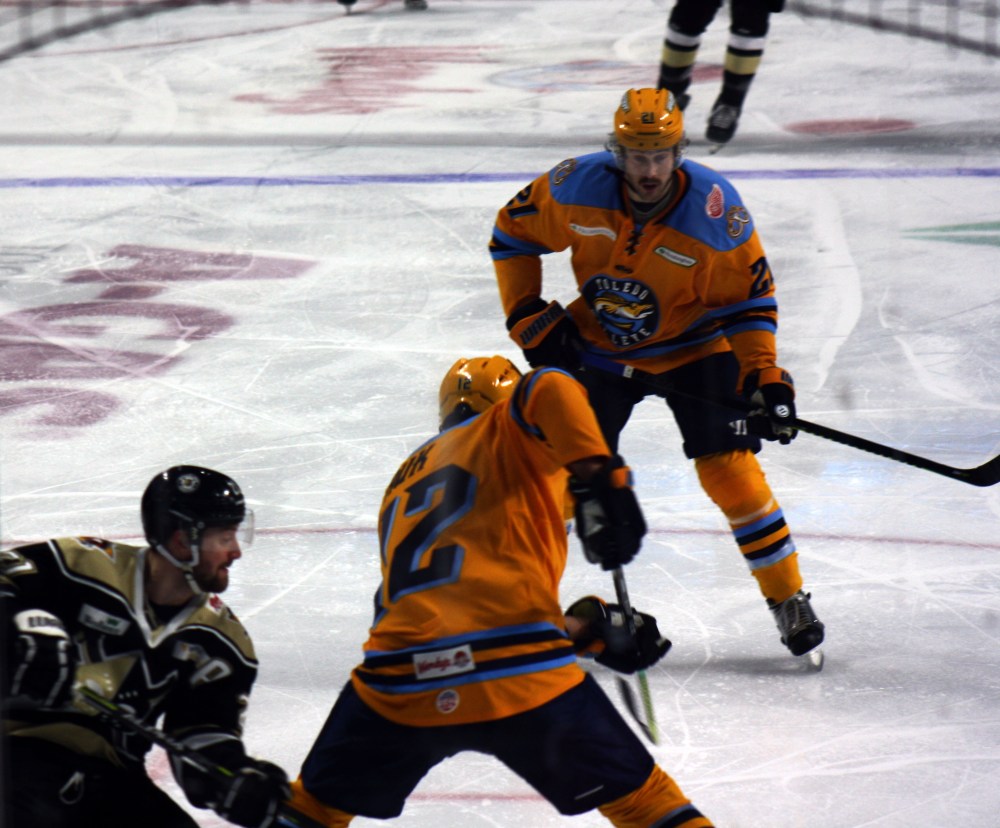 Each photo compiled in the story features vital information about the subject. In this case, Hockey game played between Toledo Walleye and Wheeling Nailers on Sunday, March 1st of 2019 is the subject of feature story.